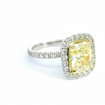 14KTT 3.13CTW YELLOW CUSH CTR .99CTTW SIDE DIA RING