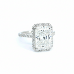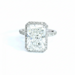 Stunning 14K white gold engagement ring featuring a 5.04CT radiant center with a halo of 52 diamonds. Exquisite sparkle and elegance for a timeless commitment. Ideal for making moments unforgettable.