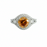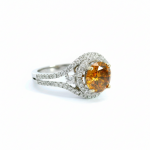 18KW 1.50CTW CTR YLW RD DOUBLE HALO .54CTW ENG RING