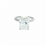 Stunning 14K white gold engagement ring with a 5.12CT radiant center and hidden halo. Sparkling elegance with 44 diamonds, perfect for making unforgettable memories. Ideal for a timeless proposal.